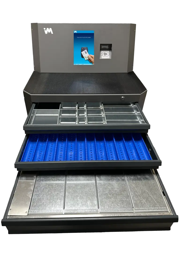 Ipari eszközkiadó automata fiókos tárolási megoldásokkal
